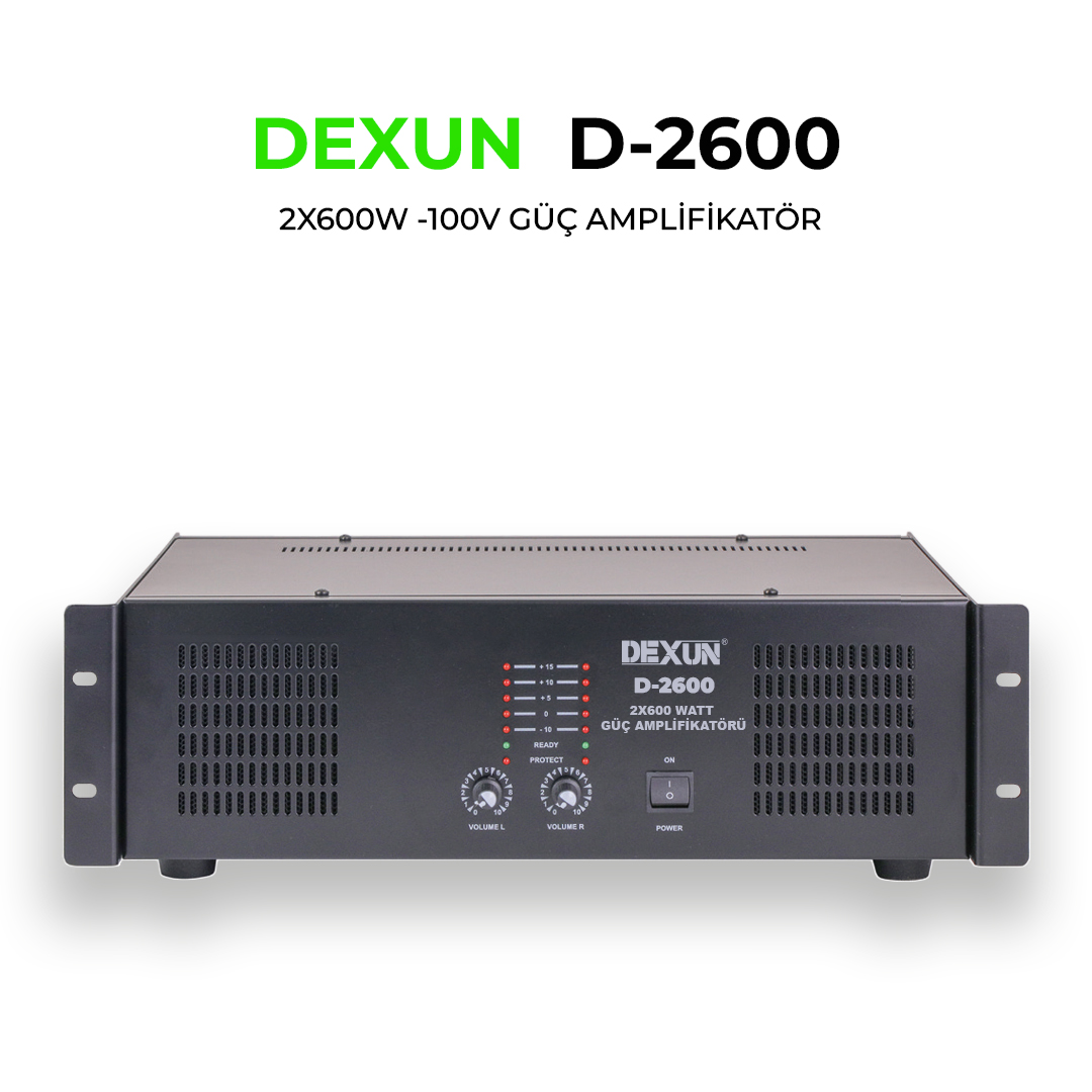 2x600 Watt Power Amplifikatör 100V Hat Trafolu Led'li vu metre Dc hp. Koruma Çıkış kısa devre koruma 19" Rack