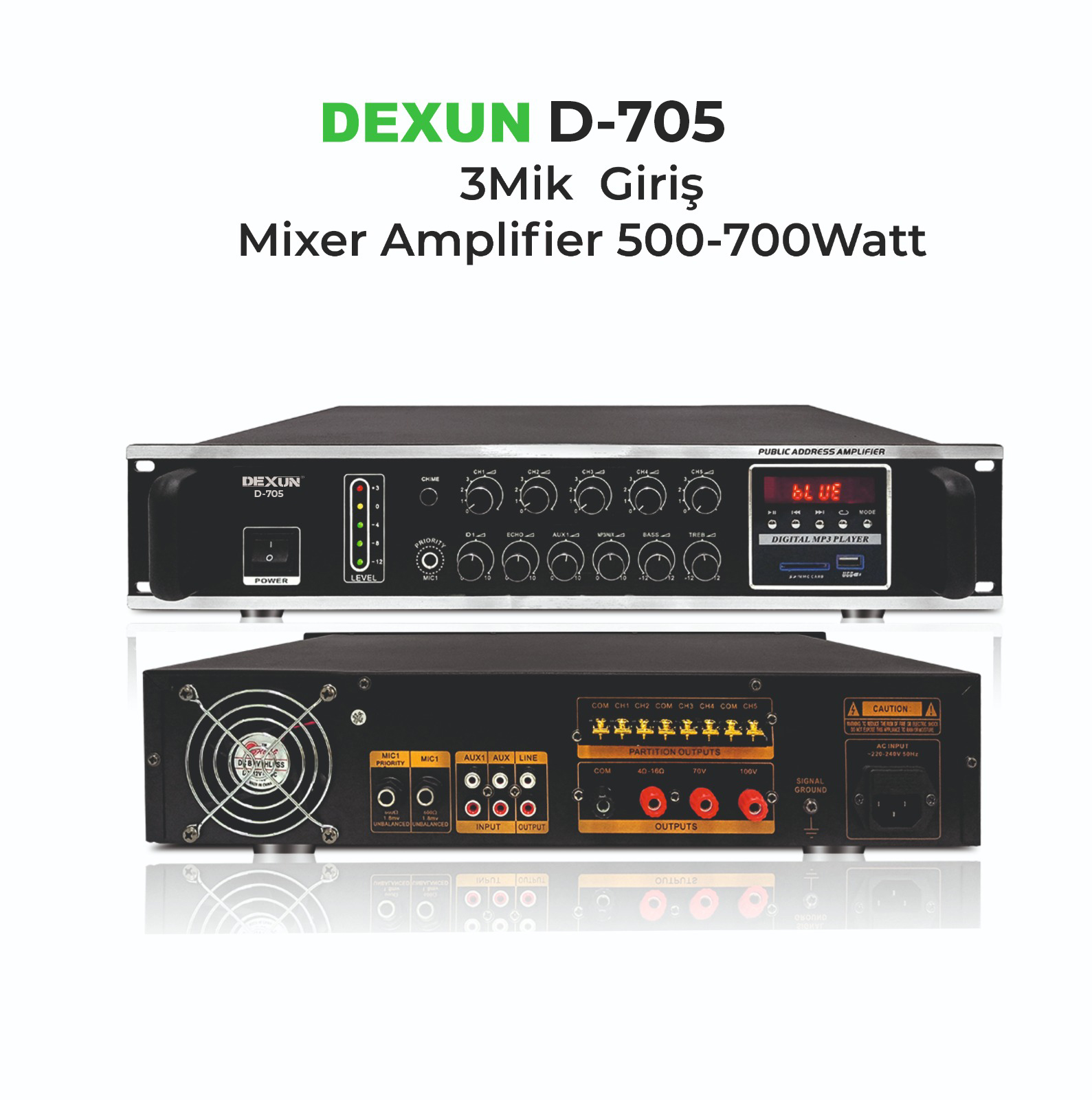 5 ZONE 700W MIX AMPLIFIER 500-700 W / 100 V Hat Trafolu 4-16 Ohm Çıkış Mp3+Bluetooth 5 Bölge Volume Kontrol Mikrofonda Müzik Kesme USB/SD Kart okuyucu 3Mikrofon Giriş Treble ve Bass Kontrol Boyut:2U