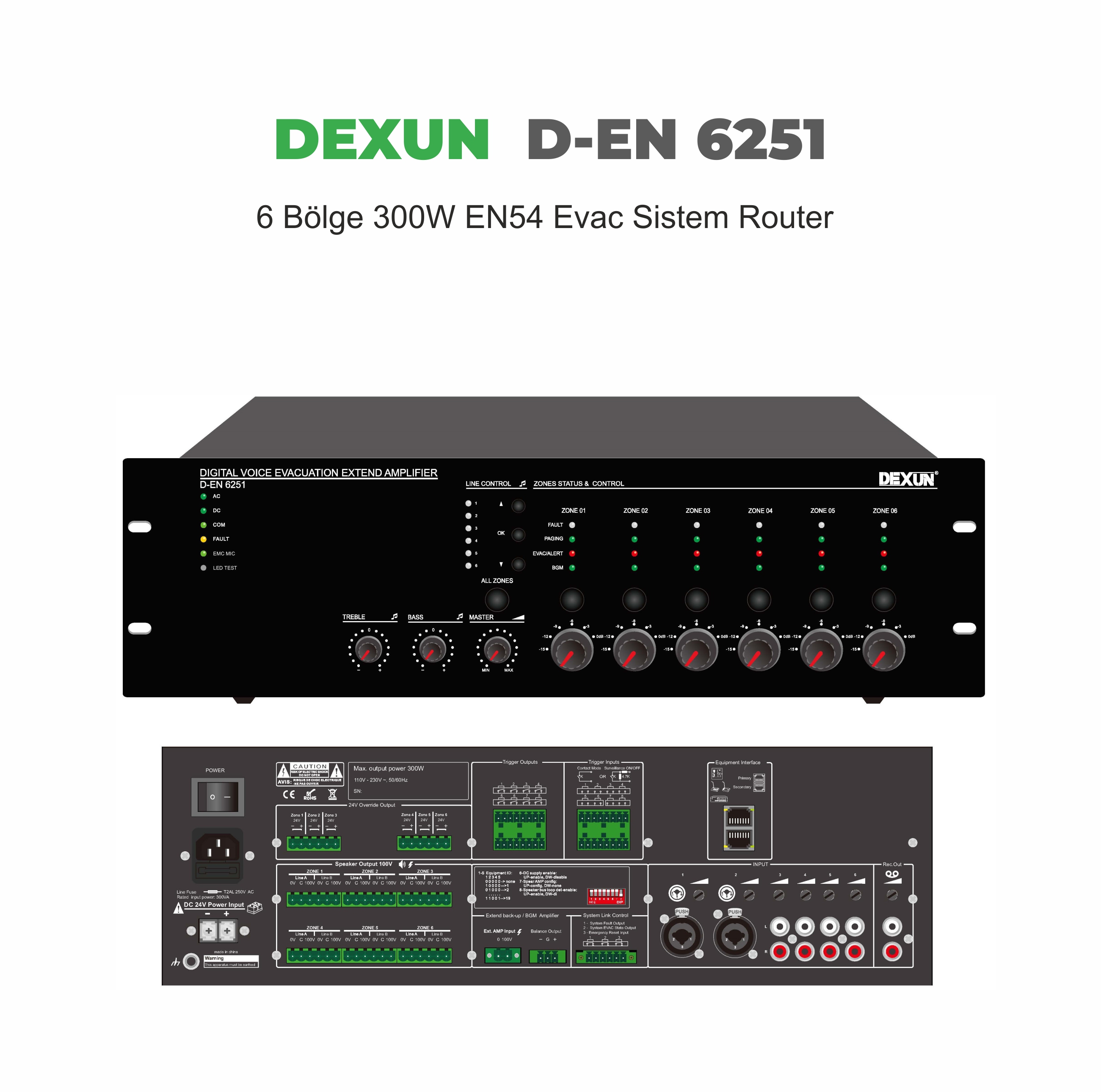 6 Bölgel EN54 Acil Anons Merkezi Ünite Router Max. 300 Watt Çıkış Gücü EN54-16 Sertifikalı 100V Hat Voltajı 6 Bölge Bağımsız Kontrol 2 Mikrofon Girişi Dahili Acil Anons Mesaj 6 Line Giriş ve Çıkış 6 Bağımsız 24V Kontak