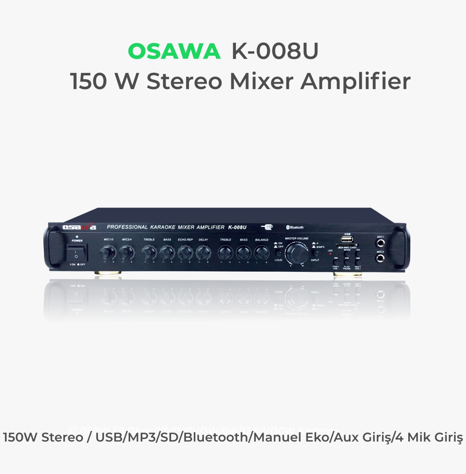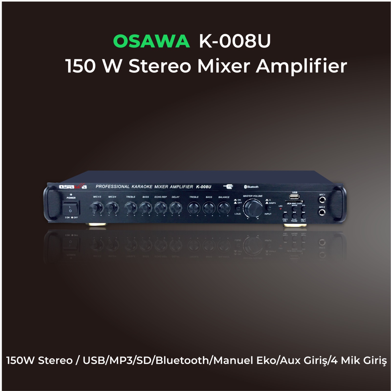 Max 150W Stereo Amplifikator USB/Mp3/SD Bluetooth Manuel EKO AUX Giriş 4Mikrofon Giriş Bass-Tiz,Balans Kontrol Aleminyum Panel