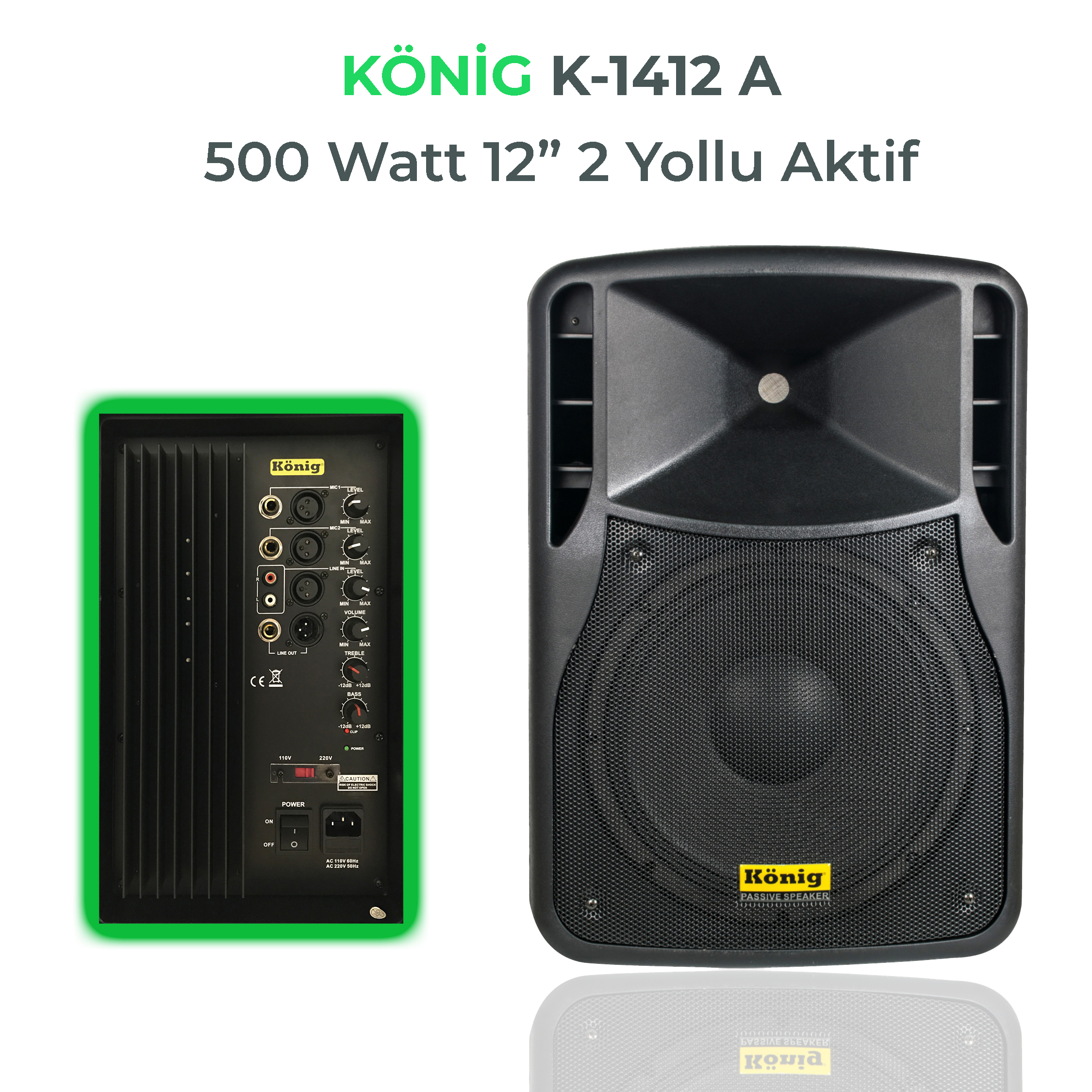 500W 12" Aktif Hoparlör Subwoofer Magnet: 50 oz Hassasiyet: 96dB Empedans:4 Ohm Driver:34mm Ebat:41x32x60cm
