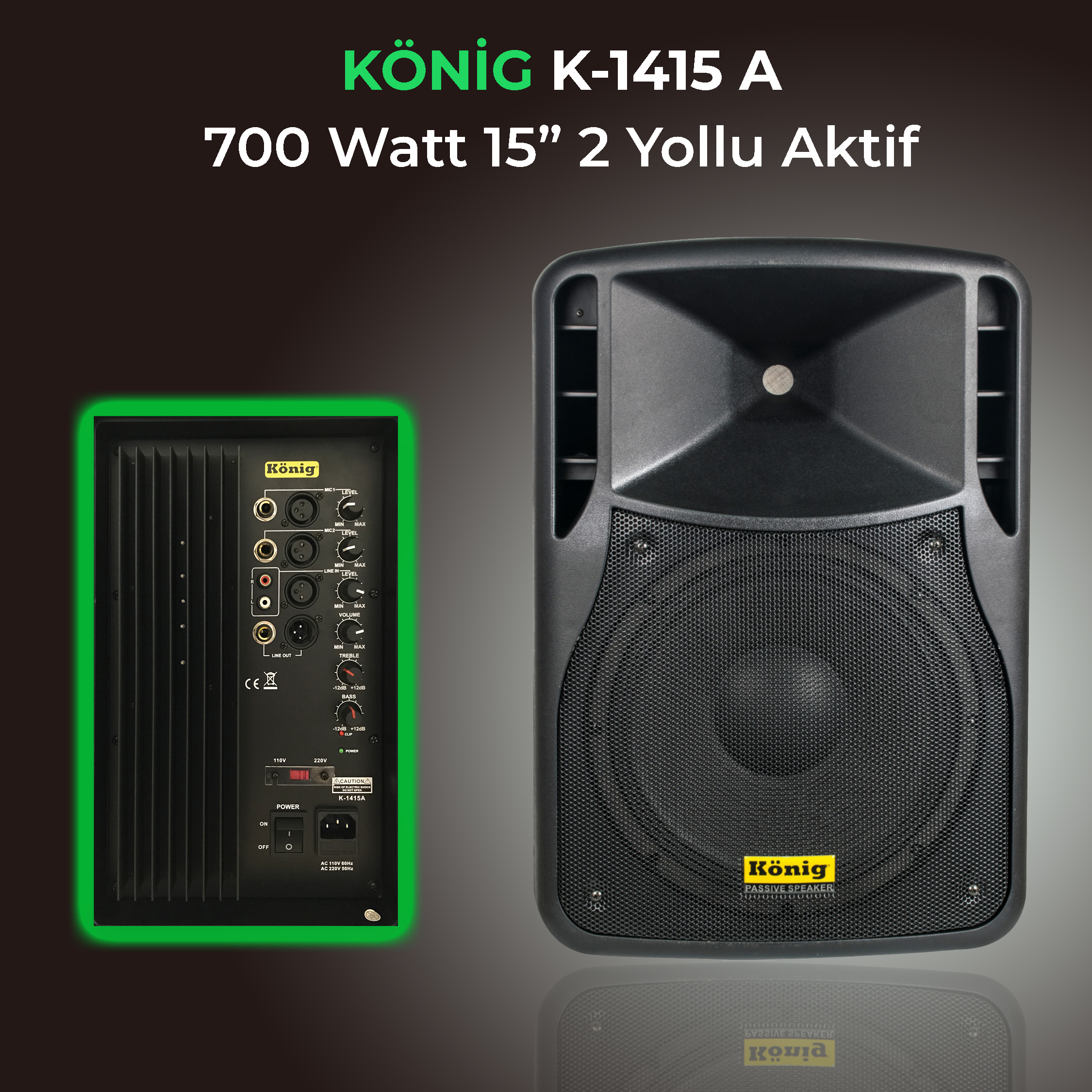 700W 15" Aktif Hoparlör Subwoofer Magnet: 60 oz Hassasiyet: 94dB Empedans:4 Ohm Driver:44mm Ebat:47x39x68cm