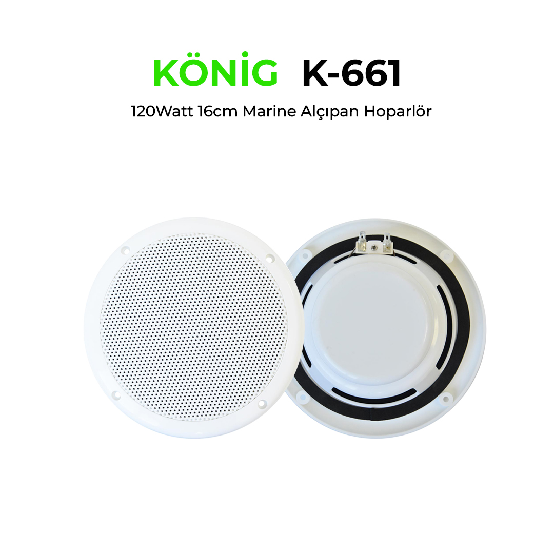 16 CM Marine Alçıpan, 2 Yollu 120 Watt 8 Ohm IP-66 Su geçirmez tasarım 80Hz-20kHz 88dB Delik Ölçüşü:135mm Derinlik: 64mm