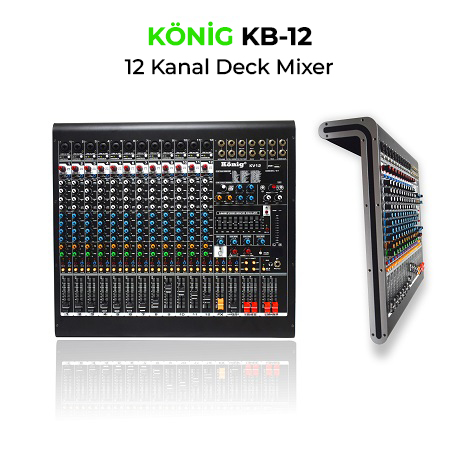 12 Kanal Dec Mixer 12 XLR-Line (Mono) Giriş 4 AUX, 2SUB Giriş 99 Dsp Effect 9 Band Equalizer 4'lü Tonlama USB/ Bluetoot Her Kanalda 48v Phantom Her kanal 4lü Tonlama