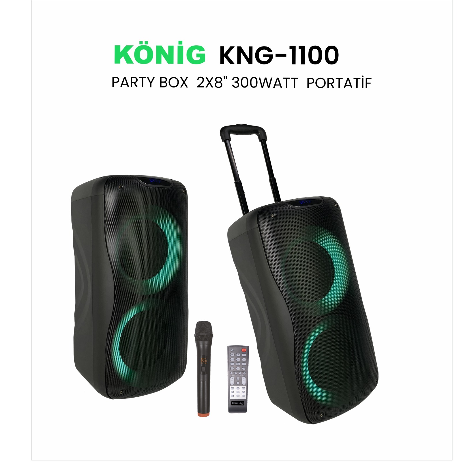 Max Güç:300Watt Aktif Hopalör RMS Güç:300Watt Subwoofer 2x8"(2x20cm) Hassasiyet:94dB USB,TF, AUX,DC,AC,Bluetooth 1UHF Wireless Mic Led Display Remote Control