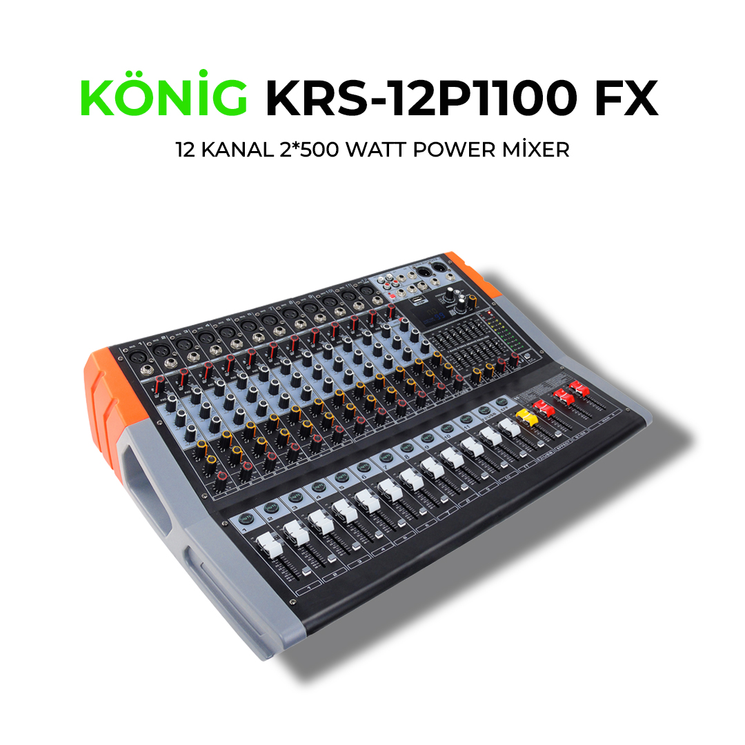 12 Kanal Power Mixer 1000Watt 2x500 W 8 Mono Giriş 2 Aux 99 Dsp Dijtal Efect 2*7 Band Ekoleyzer 3'lü Tonlama USB & Bluetooth Her Kanalda Mute tuşu +48v Phantom